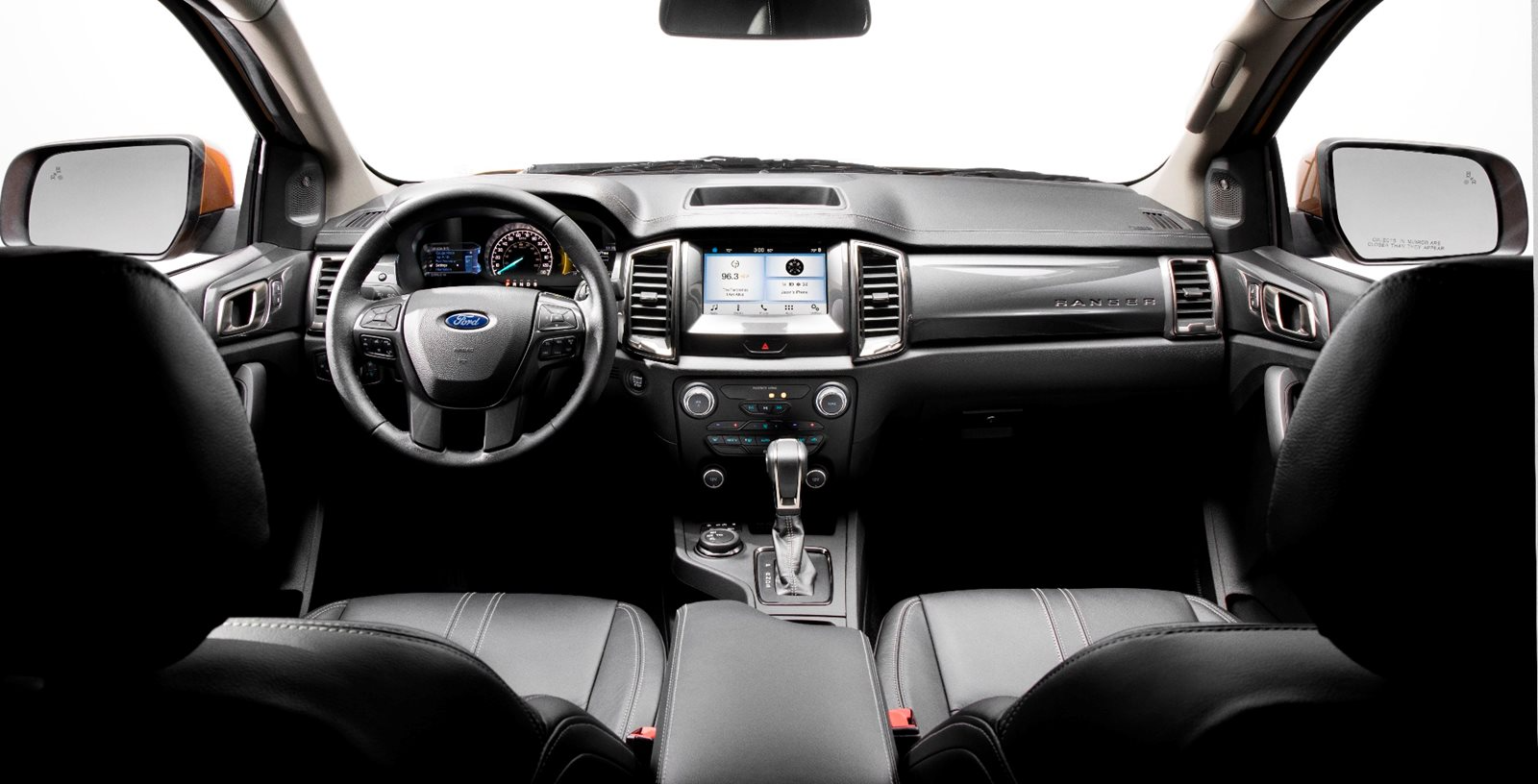 All trim levels of the Ranger feature a USB port, a four-speaker audio system, and a Wi-Fi hotspot as standard equipment. The XLT and Lariat trim levels also include an 8-inch touchscreen with Android Auto and Apple CarPlay capability so you can easily access your favorite playlists, apps, and more. A 10-speaker Bang & Olufsen sound system and integrated navigation system are also available options. The Lariat SuperCrew trim features leather-trimmed seating surfaces, heated front seats, driver and passenger bucket seats that are eight-way power adjustable, and a flow-through console and floor shift.