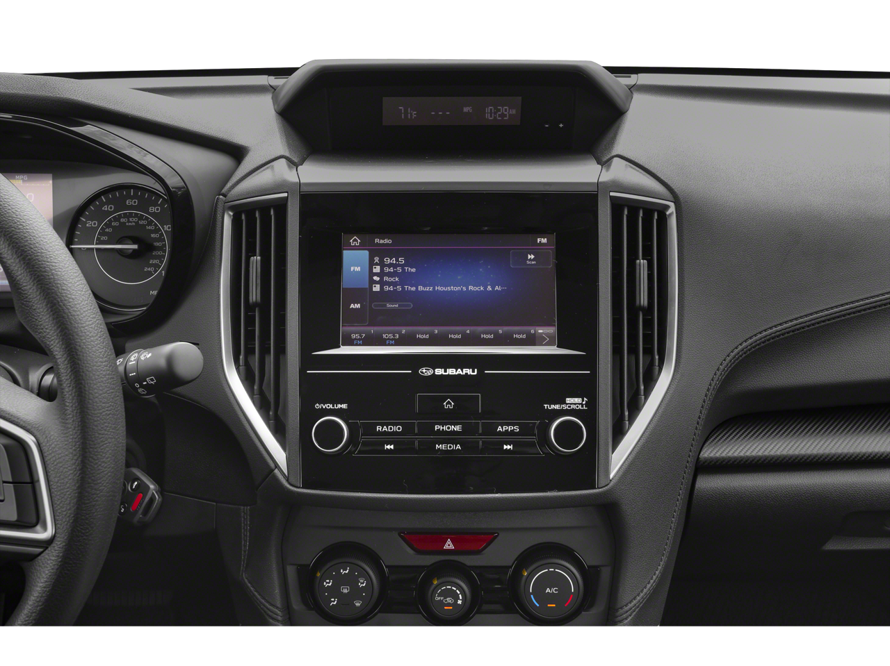 - Radio: Subaru STARLINK 6.5" Multimedia Plus System -inc: AM/FM stereo, HD radio, single disc CD player, MP3/WMA/CRR/RW file capability, multi touch gesture high resolution 6.5 LCD display screen, Bluetooth® audio streaming connectivity, Bluetooth® hands-free phone connectivity, iPod control capability, rear-vision camera display, SiriusXM All Access radio (subscription required), SiriusXM Travel Link (subscription required), smartphone integration, AHA, Android Auto, CarPlay, Pandora, 6 speakers, 3.5mm auxiliary input jack, dual USB ports, roof mounted antenna and audio/satellite connected services
