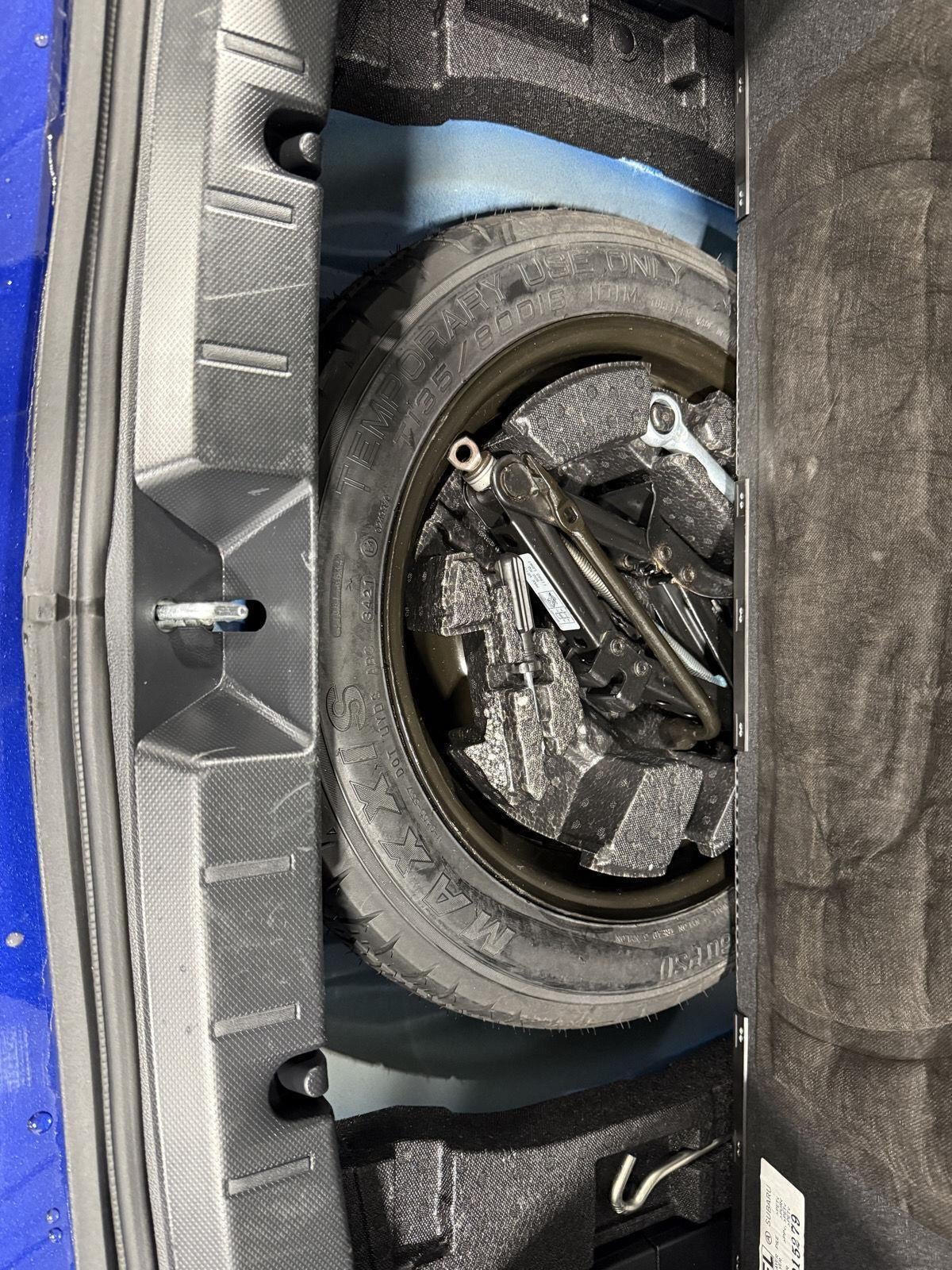 - Spare tire location Spare tire mounted under the cargo floor