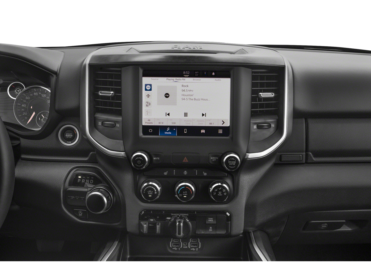 ENGINE: 5.7L V8 HEMI MDS VVT ETORQUE, TRANSMISSION: 8-SPEED AUTOMATIC (8HP75), QUICK ORDER PACKAGE 27Z BIG HORN, 3.92 REAR AXLE RATIO, WHEELS: 20"" X 9.0"" PREMIUM PAINT/POLISHED, TIRES: 275/55R20 OWL ALL SEASON, MONOTONE PAINT, BRIGHT WHITE CLEARCOAT, BLACK, DELUXE CLOTH BUCKET SEATS, PREMIUM LIGHTING GROUP, BIG HORN LEVEL B EQUIPMENT GROUP, NIGHT EDITION, BED UTILITY GROUP, ANTI-SPIN DIFFERENTIAL REAR AXLE, TRAILER BRAKE CONTROL, 33 GALLON FUEL TANK, DUAL-PANE PANORAMIC SUNROOF, REAR WHEELHOUSE LINERS, FRONT LICENSE PLATE BRACKET, PICK-UP BOX LIGHTING, RADIO: UCONNECT 5 NAV W/12.0"" DISPLAY, 9 AMPLIFIED SPEAKERS W/SUBWOOFER, REMOTE START SYSTEM, MOPAR FRONT & REAR RUBBER FLOOR MATS, PARKSENSE FRONT/REAR PARK ASSIST W/STOP, REAR UNDERSEAT COMPARTMENT STORAGE, MANUFACTURER'S STATEMENT OF ORIGIN, 115V AUXILIARY POWER OUTLET